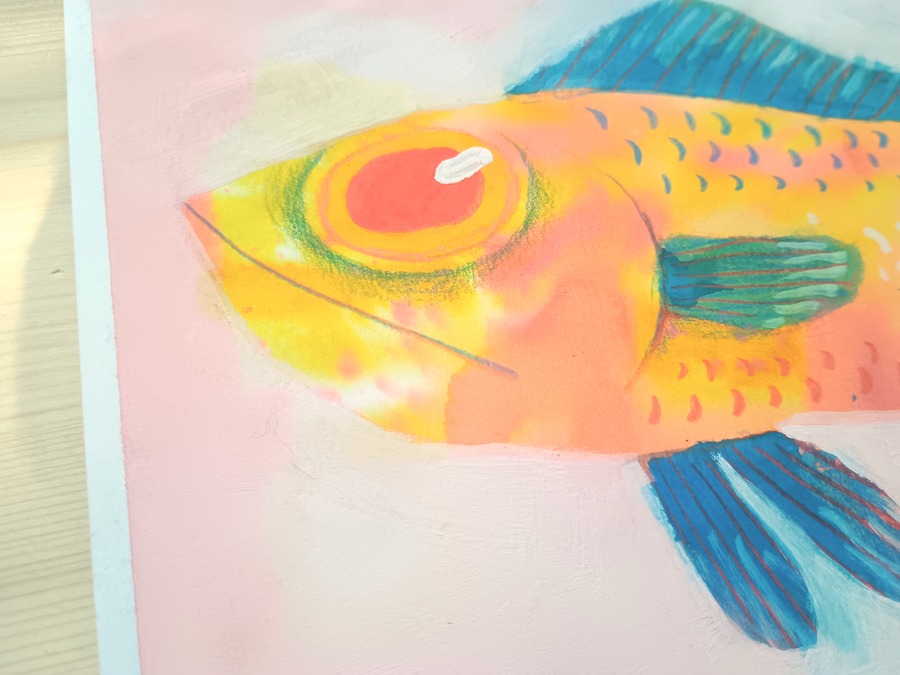 Ryby maluju pro duševní pohodu. Je to obrázek, který má smysl jenom jako radostná hra s barvami.